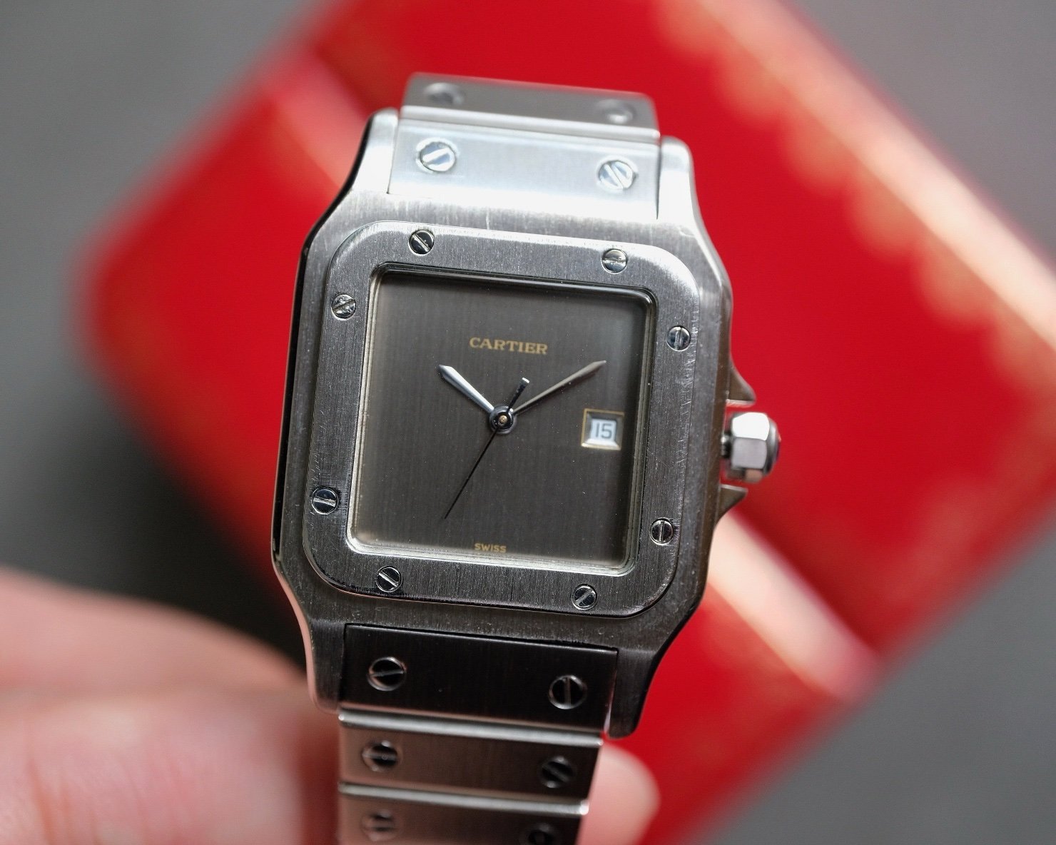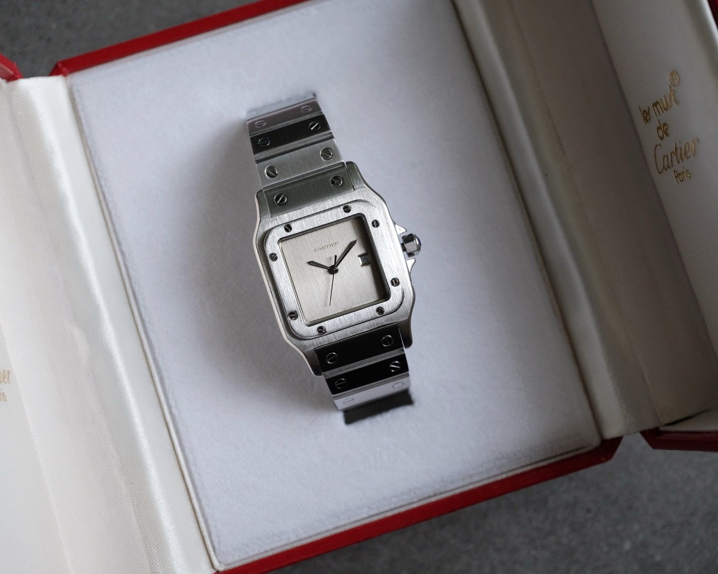 Cartier Santos Carree Grey Slate Ghost Dial LM Automatic Ref. 2960