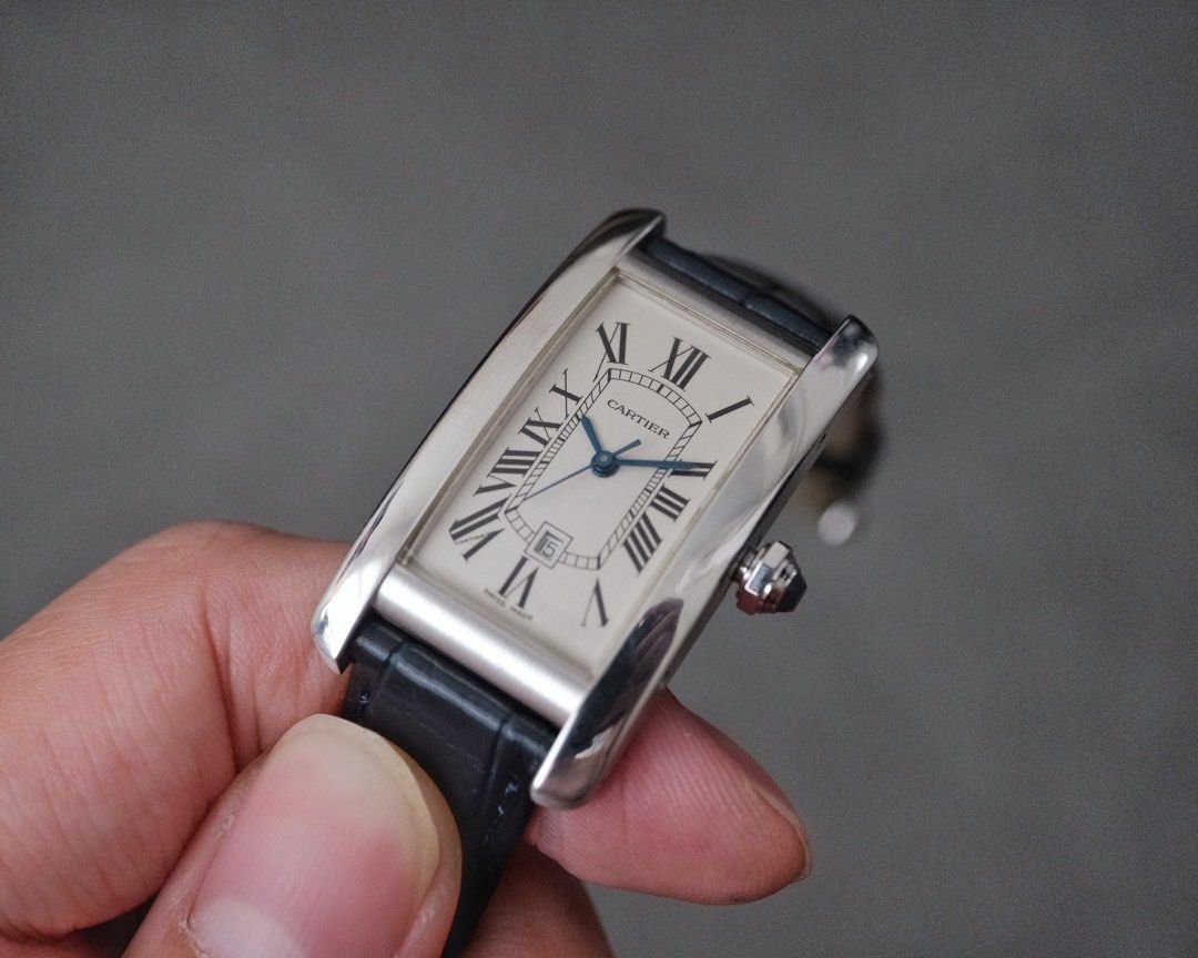 Exquisite craftsmanship meets timeless elegance in the Cartier Tank Americaine Ref. W2603656. This midsize masterpiece, crafted in 18k white gold, embodies Cartier’s iconic elongated case design, Roman numerals, and sword-shaped blue steel hands. Perfect for collectors or daily wear, it pairs classic aesthetics with modern sophistication.