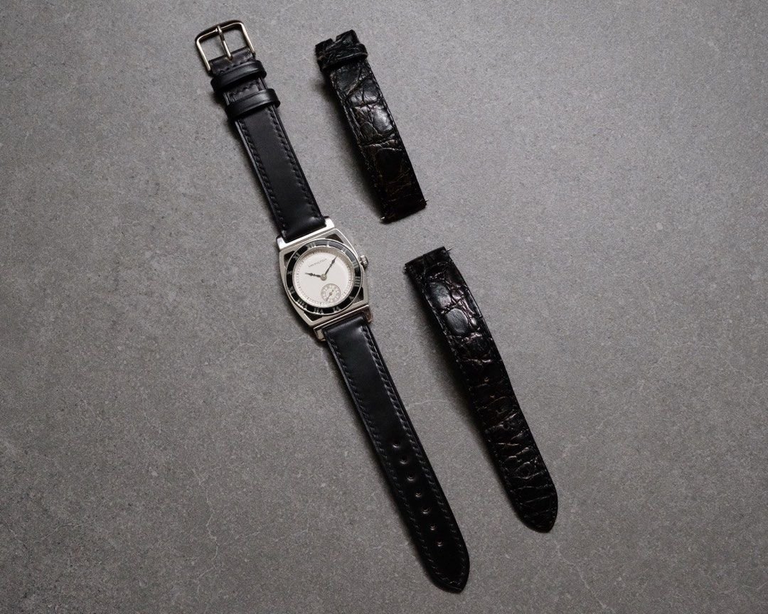 • Strap: Black leather strap