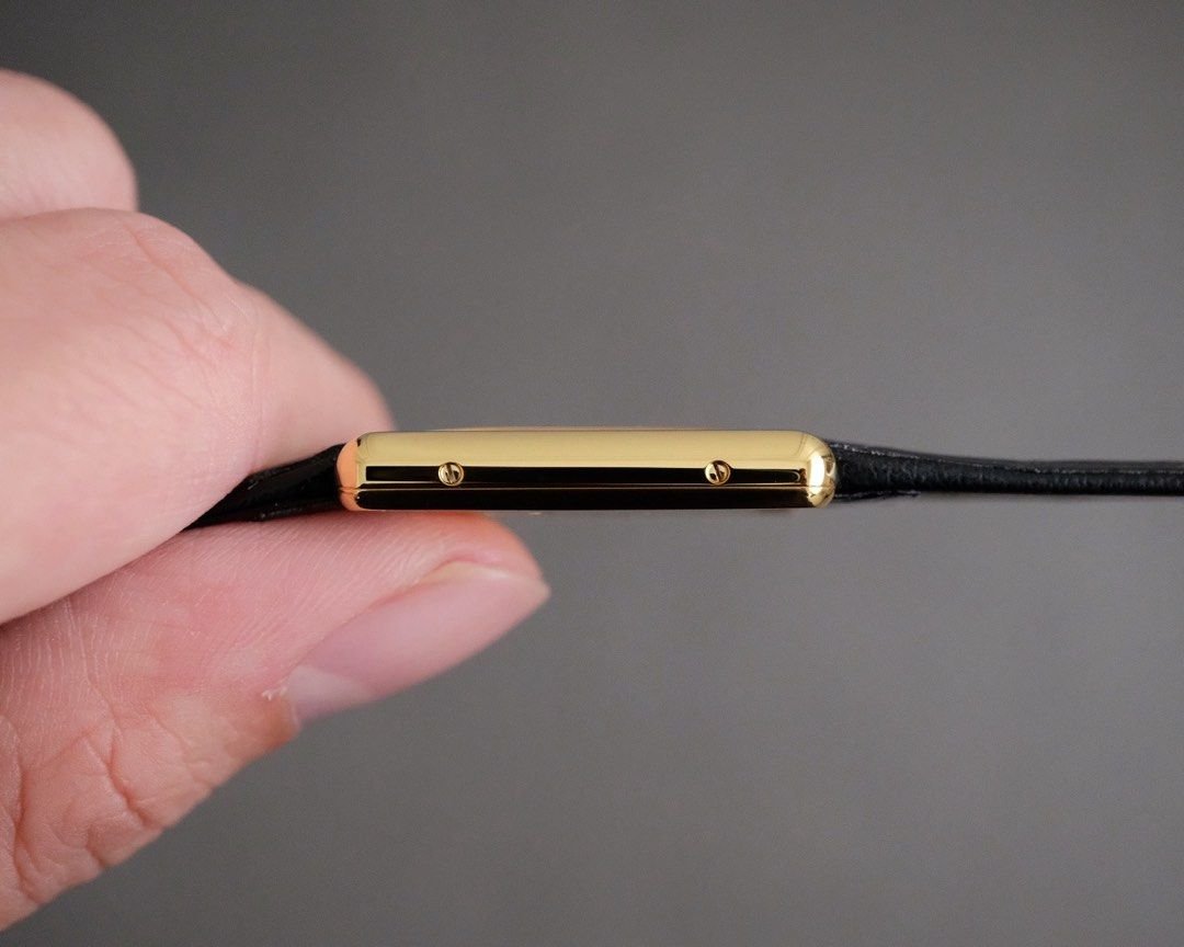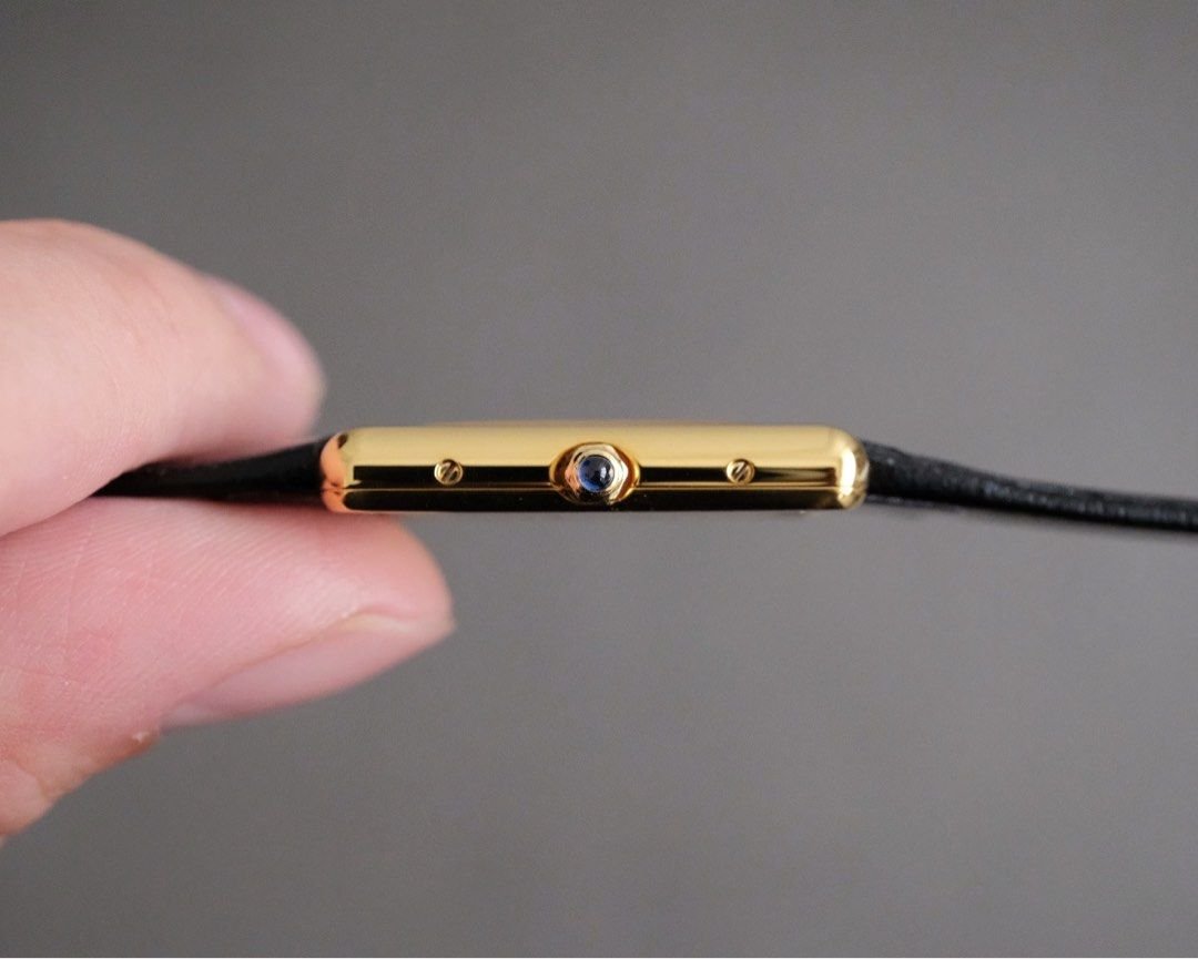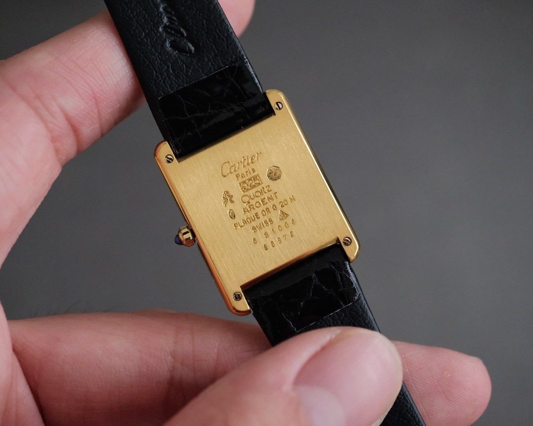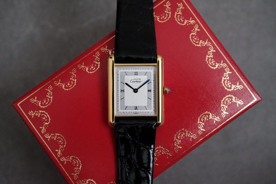 The Must de Cartier Tank Vermeil LM Ref. 681006 features a rectangular vermeil case, dual-tone dial with sub Roman numerals, and a black leather strap. Powered by a precise quartz movement, this watch epitomizes Cartier’s classic elegance and enduring craftsmanship.