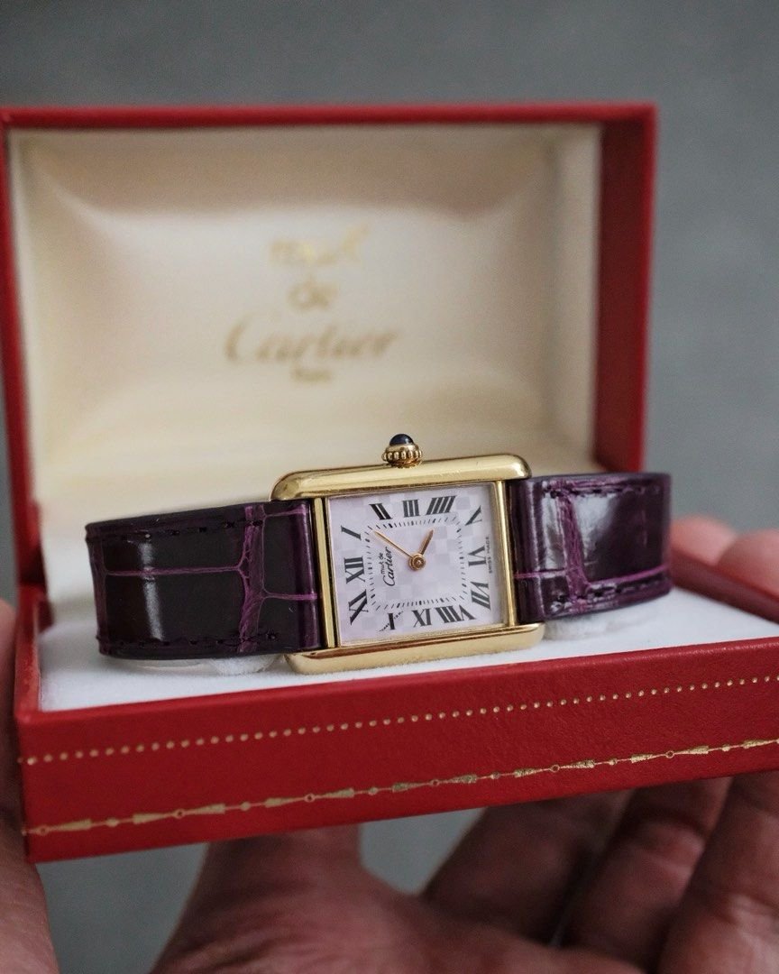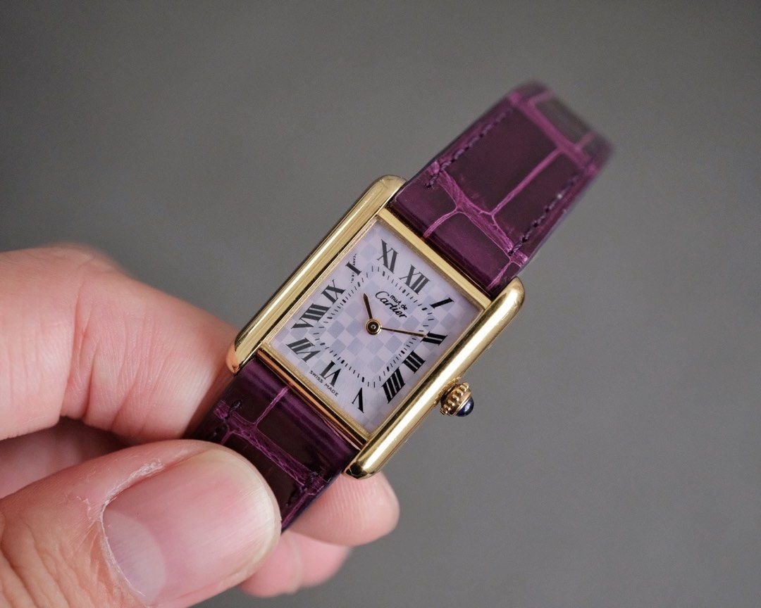 Luxury meets practicality in the Must de Cartier Tank Vermeil Purple Chessboard Dial. Its slim profile makes it comfortable for daily wear, while the reliable quartz movement ensures precision and longevity. The watch is completed with a leather strap that complements the rich tones of the dial, allowing for seamless pairing with both formal and casual attire.