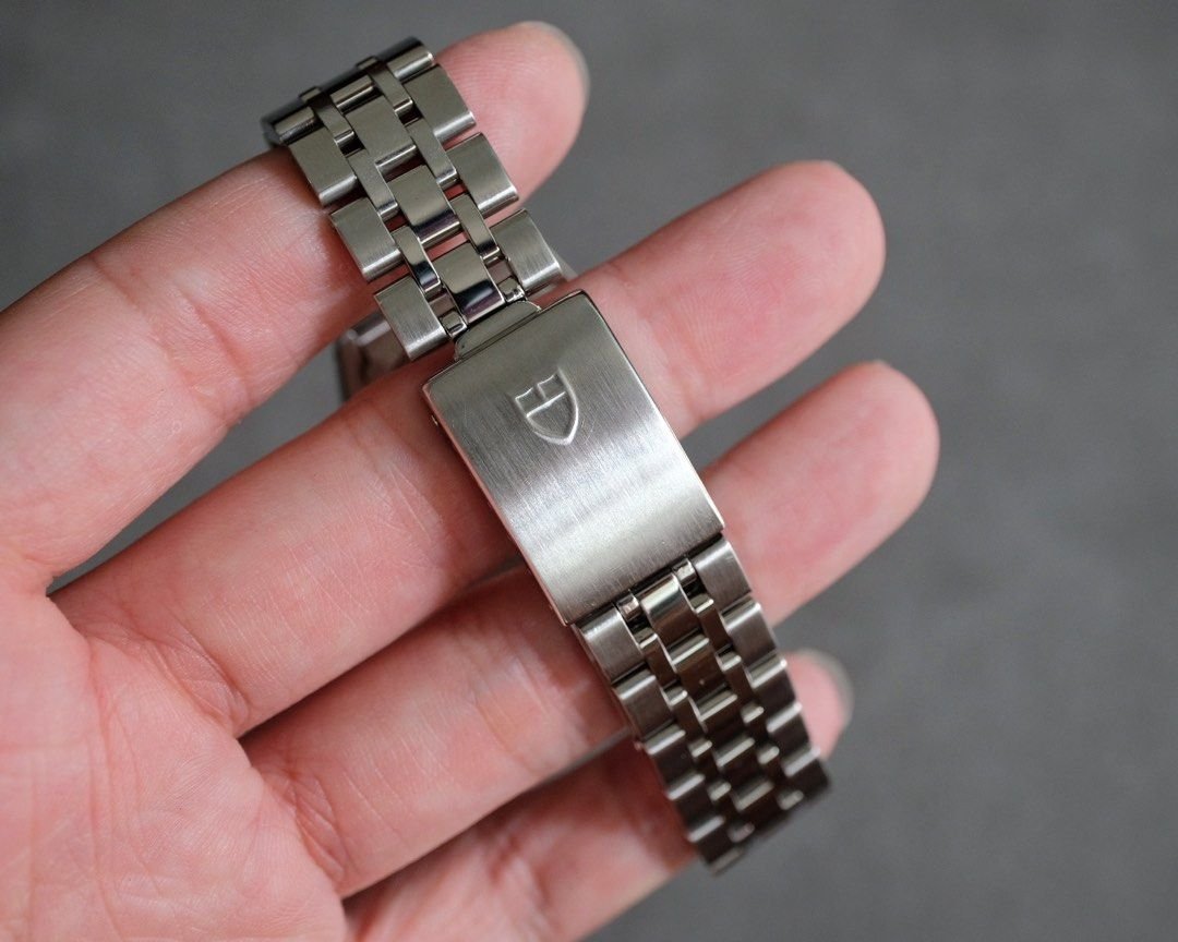 - Bracelet: Stainless steel Oyster-style bracelet with folding clasp